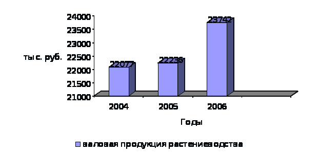 Из таблицы 1 видно, что основной показатель размера производства – стоимость валовой продукции за период времени с 2004 по 2006 гг. возрос на 28,7 %. Основной причиной этого является увеличение объемов производства почти всех видов продукции в силу увеличения посевных площадей. В результате роста объемов производства продукции произошло увеличение количества работников предприятия со 107 человек в 2004 г. до 144 человек в 2006 г., что больше уровня данного показателя в среднем по предприятиям района на 46,9 %.