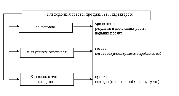 При організації обліку продукції її групують за формою, ступенем готовності і технологічною складністю. Класифікація готової продукції відображається на малюнку 2.