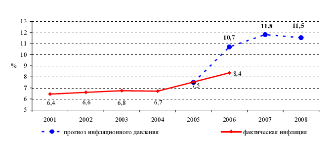 Согласно отчету Национального Банка, по итогам 10 месяцев 2007 года инфляция в Казахстане составила 13,4%, это почти в два раза выше, чем такая же инфляция за 10 месяцев прошлого года, половина этого роста приходится на последние два месяца за сентябрь-октябрь цены выросли на 6,7%. Годовая инфляция в октябре 2007 года достигла 15,3%, такого уровня инфляции не было на протяжении последних семи лет. Такой рост инфляции происходит на фоне очень умеренного денежного предложения, что достаточно парадоксально. Денежная масса за 10 месяцев выросла всего на 18%, это ниже, чем темпы роста номинального ВВП, а денежная база вообще не изменилась за 10 месяцев.
