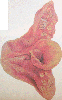 М.М. Агабабян (1970) указывает, что при заражении овцематок сальмонеллы не сразу проникают в плод. Вначале под действием токсина, выделяемого 5. аЬог-1из-оУ15, нарушается барьерная функция плаценты матери, затем плода и лишь после этого бактерии проникают в плод.