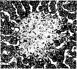При грудной форме в местах отёка тканей - серозно-фибринозный выпот, коллагеновые волокна разобщены, сосуды кровенаполнены, по их ходу видны лейкоциты и пастереллы. В лёгких-крупозная пневмония с серозным или серозно-фибринозным экссудатом в просвете альвеол, отёк периваскулярной, перибронхиальной соед. ткани. Отдельные альвеолы заполнены эритроцитами полностью. В печени, селезёнке, надпочечниках-скопление микробов, часть гепатоцитов в состоянии некроза. В тонком кишечнике - глубокие альтеративные процессы (зернистая, слизистая дистрофия). |