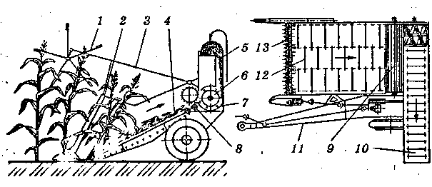 9 – бітерний барабан; 10– вивантажувальний конвеєр; 11 – причіпна сниця;
