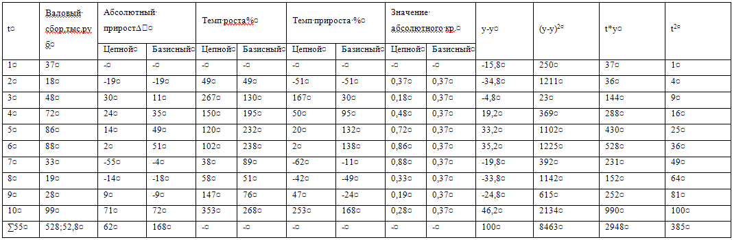 Вывод : из данной таблицы при аналитическом выравнивании валового сбора сахарной свеклы по предприятиям видно, что валовый сбор не зависит от условного периода времени.