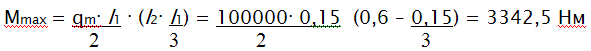 Де Mmax – згинальний момент у небезпечному перерізі (т. В)