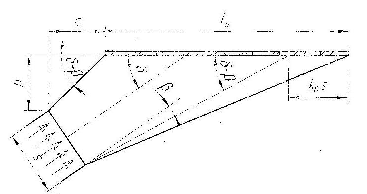 β – кут розширення потоку (β=12º);