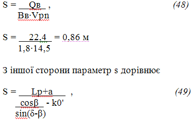 a = (cosβ/ sin(δ-β) - k0')·S – Lp = (cos12/ sin(30-12)-0,6)·0,86-2,2 =