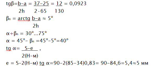 Для проектних розрахунків можна приймати α1≤25º; y1=45º; y2=2º; r1/ r2=0,4.