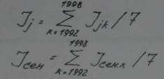 Определяются среднегодовые коэффициенты затрат в земельно-оценочных районах по сельскохозяйственным культурам и сенокосам путем суммирования ежегодных коэффициентов за 1991-1999 гг. и делением полученной суммы на количество лет, т.е. на 9.