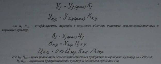 Определяются расчетные затраты в земельно-оценочных районах по сельскохозяйственным культурам и сенокосам путем умножения соответствующих фактических затрат по субъекту РФ за 1999 гг. на среднегодовые коэффициенты затрат, сложившиеся в земельно-оценочных районах п. 7.2.3.