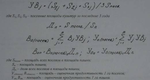 Определяются по земельно-оценочным районам расчетные затраты на использование 1 га пашни взвешиванием расчетных затрат на 1 га посевов сельскохозяйственных культур на их посевные площади и корректировкой полученного результата на долю всех посевов в площади пашни.