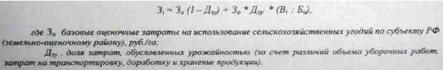 Определяются ежегодные коэффициенты затрат в земельно-оценочных районах по сельскохозяйственным культурам и сенокосам делением фактических затрат за соответствующий год по земельно-оценочным районам на фактические затраты в целом по субъекту РФ.