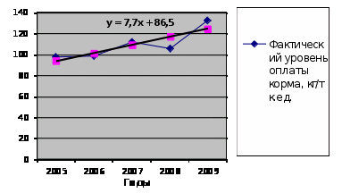 2. Динамика уровня оплаты корма (кг/т к.ед.) в сельскохозяйственной организации за пятилетие