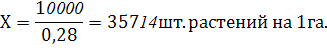 Зная площадь питания одного растения, находим густоту стояния растений на 1га: