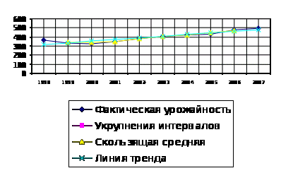 Для анализа развития урожайности в динамики, путем сопоставления различных взаимосвязанных показателей была использована модель построения рядов динамики.