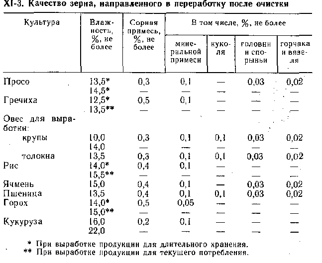 В результате очистки зерна от примесей их содержание не должно превышать следующих показателей (табл. XI-3).