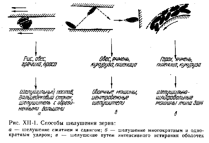 Существуют три способа воздействия рабочих органов на зерно, в результате которого происходит разрушение и удаление оболочек.