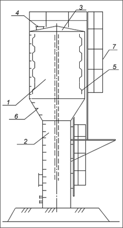 Рисунок – 4. Основные элементы Водонапорных башен Рожновского (ВБР).Бак, 2 – Опора, 3 - Стальная крышка, 4 - Смотровой люк, 5 - Скобы-льдоудержатели, 6 – Лестница, 7 – Ограждение.