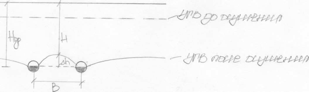 Мощность подпочвенного слоя (супесь) Т = 8 м, ниже залегает водоупор из моренного суглинка и глины. К2 = 1,5 м/сут.