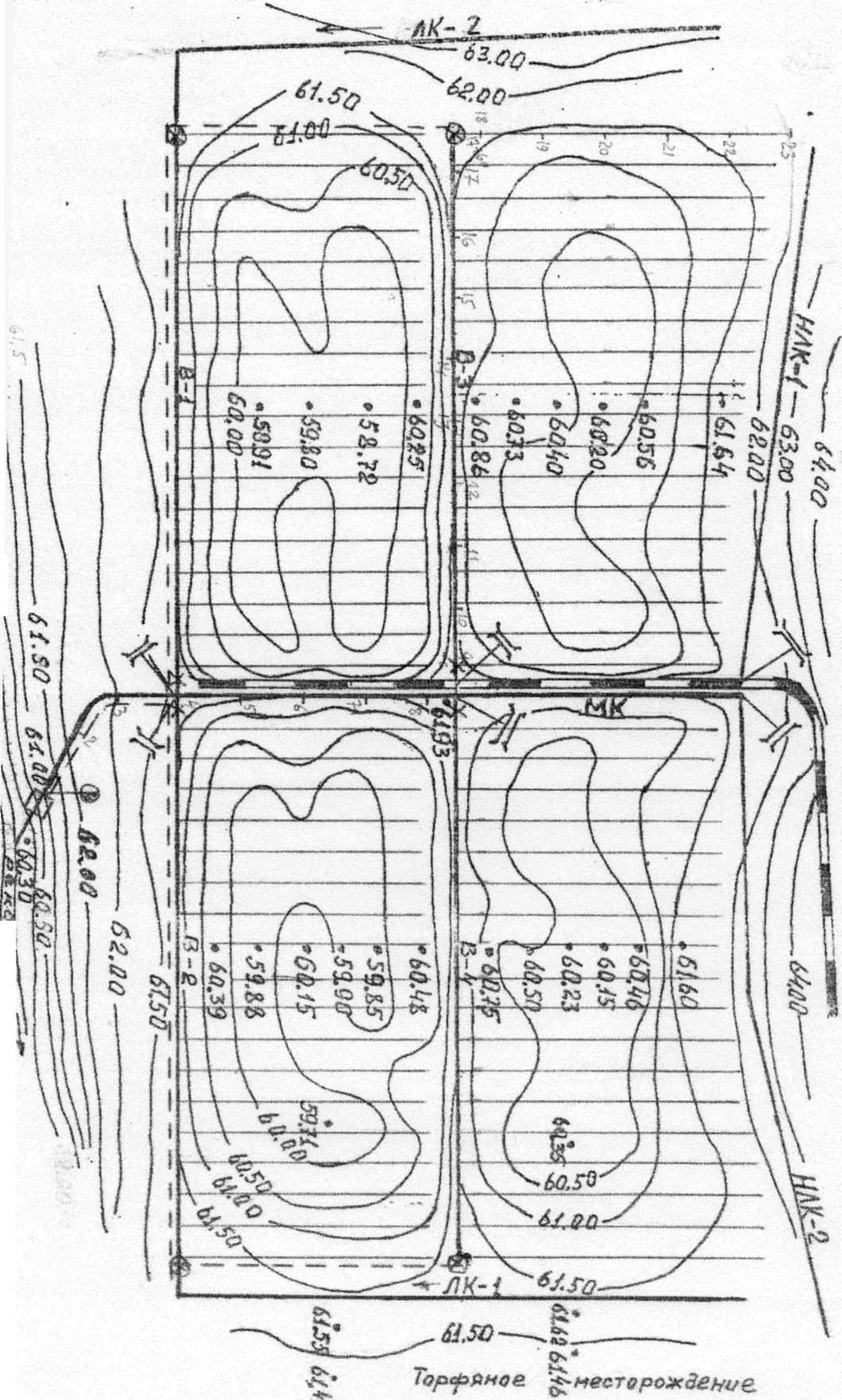 Топографический план участка мелиорации. М 1:5000 с горизонталями через 0.5 м.