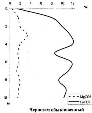 Карбонатность профиля черноземов генетически связана с карбонатностью материнских пород. Широко распространенные лессовидные глины и суглинки всегда карбонатны, содержание в них СаСО>3> достигает 6 - 7%.