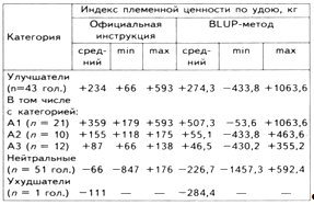 По итогам оценки производителя по качеству потомства выделяют три категории быков: 1) «улучшатели»; 2) «ухудшатели»; 3) нейтральные