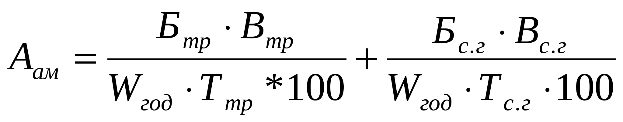 W>доб> – виробіток агрегату за добу, га/доб, т/доб