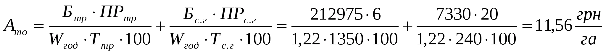Обсяг транспортних робіт в умовних еталонних гектарах (графа 18), визначають за формулою: