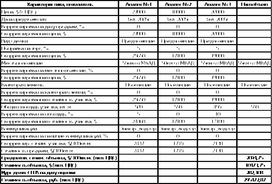 Исходя из анализа всех данных, относящихся к рассматриваемым объектам оценки, ниже приведены полученные результаты анализа стоимости объекта (см. Приложение 3).