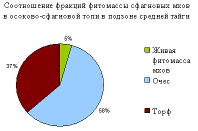Отмирающие нижние части сфагновых мхов формируют многометровые отложения торфа. В верхних слоях идет постепенное разложение органических веществ, нижние под давлением верхних слоев уплотняются на глубине несколько метров, одному году соответствует уже слой толщиной несколько миллиметров, а возраст глубинных слоев составляет несколько тысячелетий.
