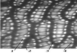 Рисунок 5 - Клетки сфагна: 1 – водоносная клетка; 2 – хлорофиллоносная клетка; 3 – пора; 4 – спиральные волокна