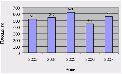 Посівна площа даної культури в 2006 році становила 3964 тис. га. Найбільша ж посівна площа під даною культурою була зареєстрована в 2003 році, а саме 4001 тис. га. Стосовно збиральної площі то вона в 2006 році склала 3611 тис. га. Що на 222 тис. га більше ніж в 2005 році. Врожайність по Харківській області в 2006 році була нижче ніж по Україні і становила 8,6 ц/га. Розглянувши дані таблиці можна зробити висновок що вирощування соняшнику як по Україні так і по Харківській області ведеться екстенсивним шляхом, так як виробництво даної культури збільшується завдяки значному збільшенню площ, а не підвищенню урожайності.