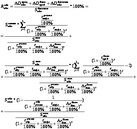 Для оценки уровня риска изменения условий РЕПО- операции на изменение суммарного уровня рентабельности 3-х этапной операции, воспользовавшись программой расчета, изложенной в разделе 5.1 проведем оценочные расчеты частных показателей чувствительности финансовой операции к изменению основных параметров РЕПО-операции (уравнение 5.3):