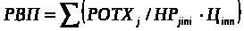 в) планируемое сокращение нормы расхода i-го ресурса на единицу i-го вида продукций умножается на планируемый к выпуску объем производства i-го вида продукции, полученный результат делится на плановую норму расхода и умножается на плановую цену данного изделия, после чего подсчитывается общая сумма резерва валовой продукции: