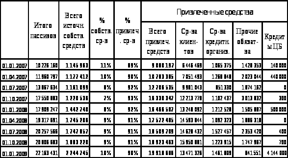 По данным таблицы 1 очевидно, что процент привлеченных средств в ресурсах ОАО "Дальневосточный банк" составляет подавляющее большинство, примерно 90%.