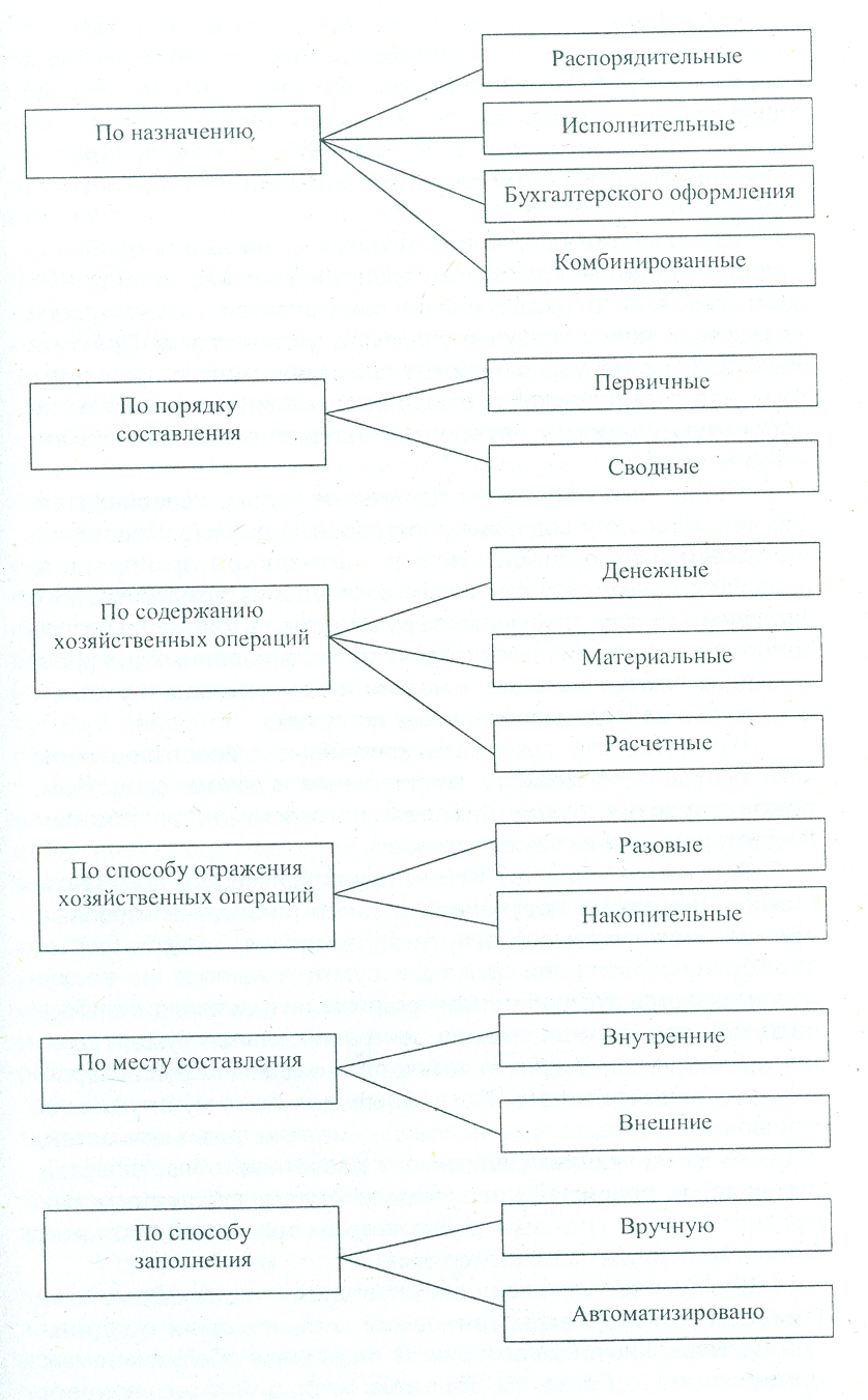 Для выбора наиболее рациональных форм, видов при оформлении тех или иных операций все документы классифицируют (группируют) по нескольким признакам: