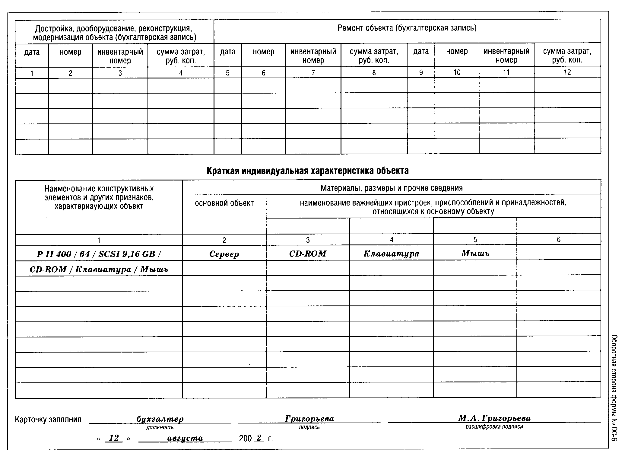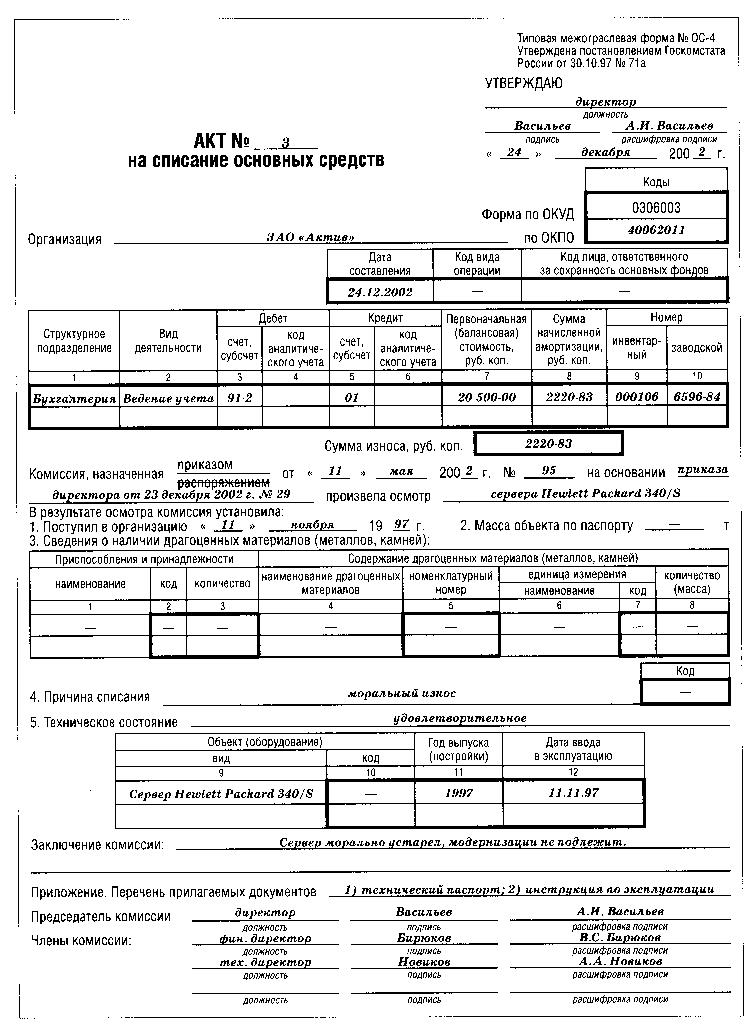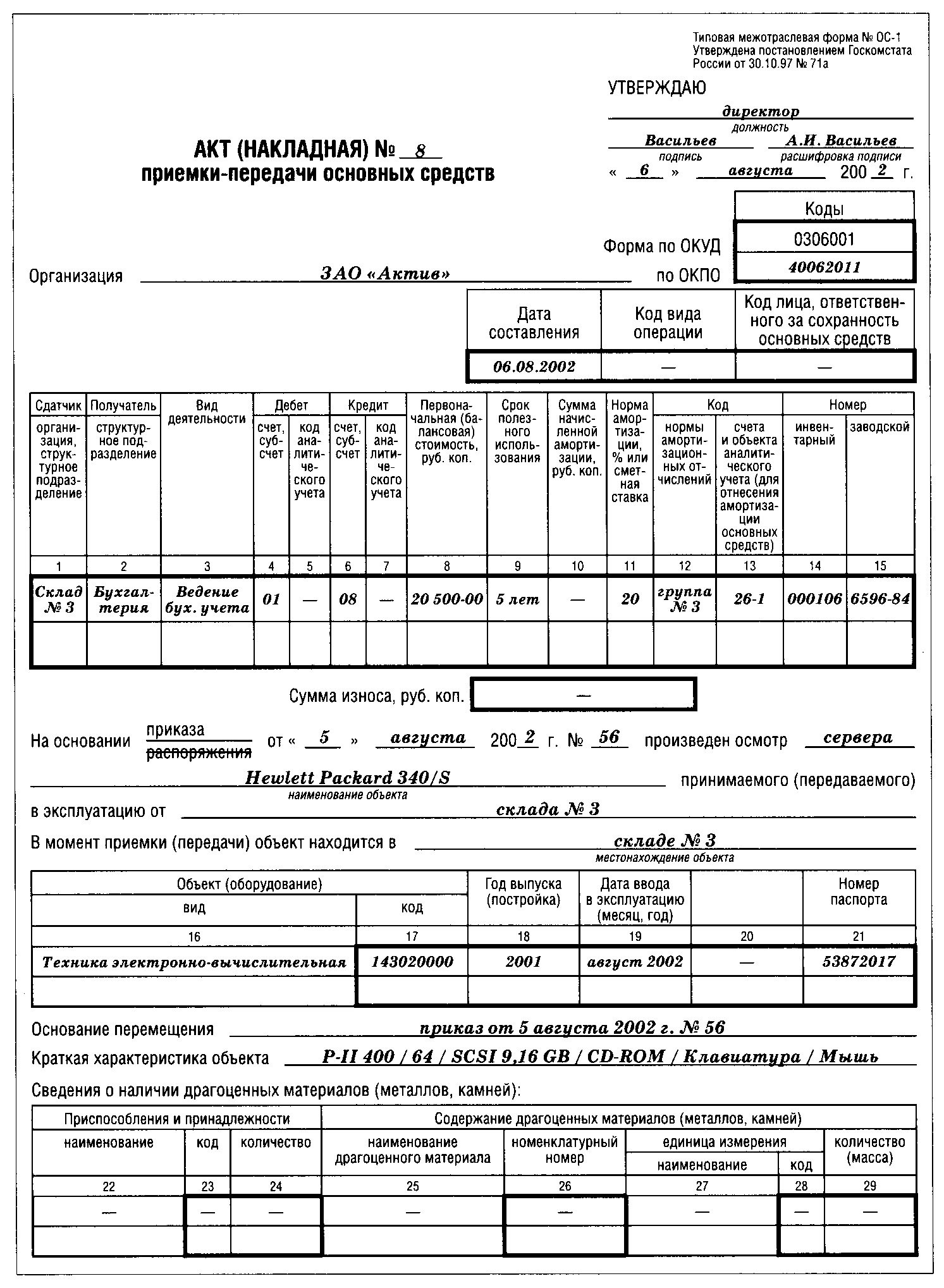 Постановление Госкомстата РФ от 30 октября 1997 г. N 71а "Об утверждении унифицированных форм первичной учетной документации по учету труда и его оплаты, основных средств и нематериальных активов, материалов, малоценных и быстроизнашивающихся предметов, работ в капитальном строительстве" (с изм. и доп. от 25 января, 2 июля, 11 ноября 1999 г., 29 декабря 2000 г., 6 апреля 2001 г., 28 января 2002 г.)