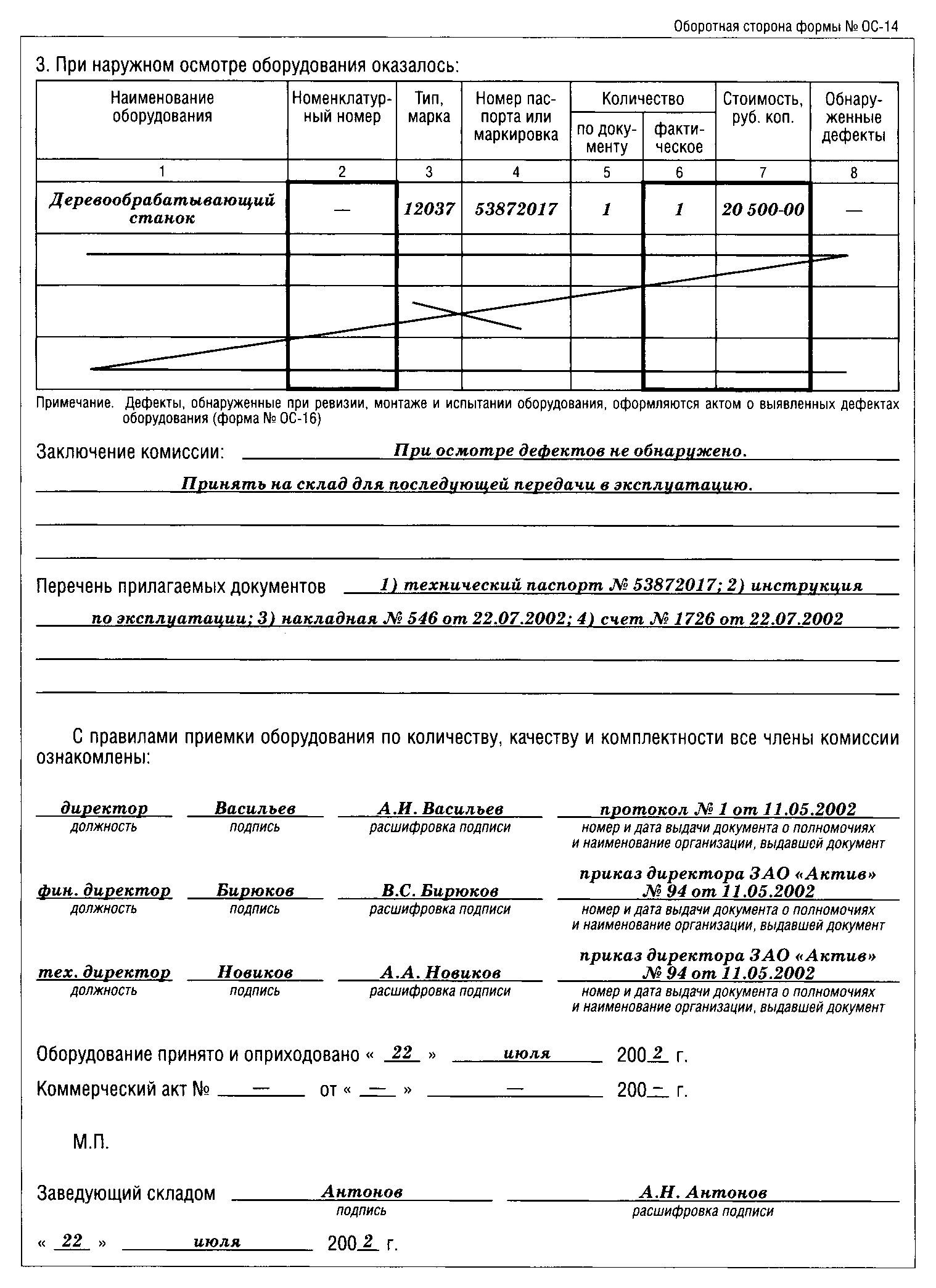 4.3. Акт о приемке оборудования (форма N ОС-14) ………………..… 14