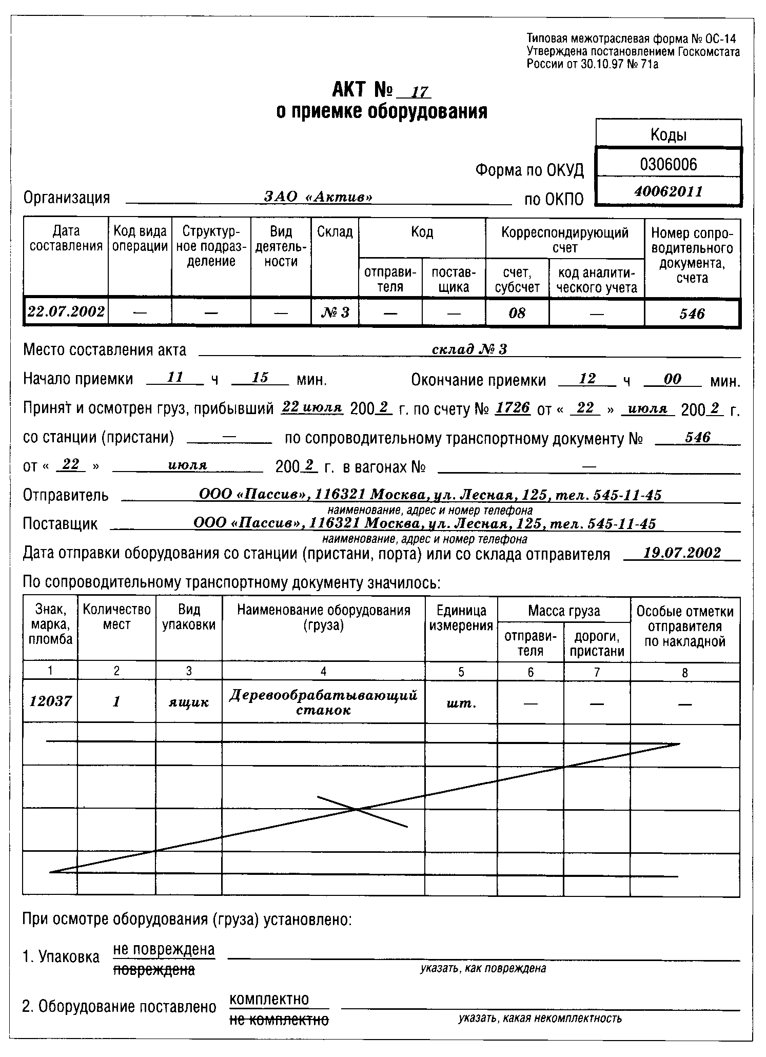 5.4. Акт приемки-передачи оборудования в монтаж (форма N ОС-15) 22