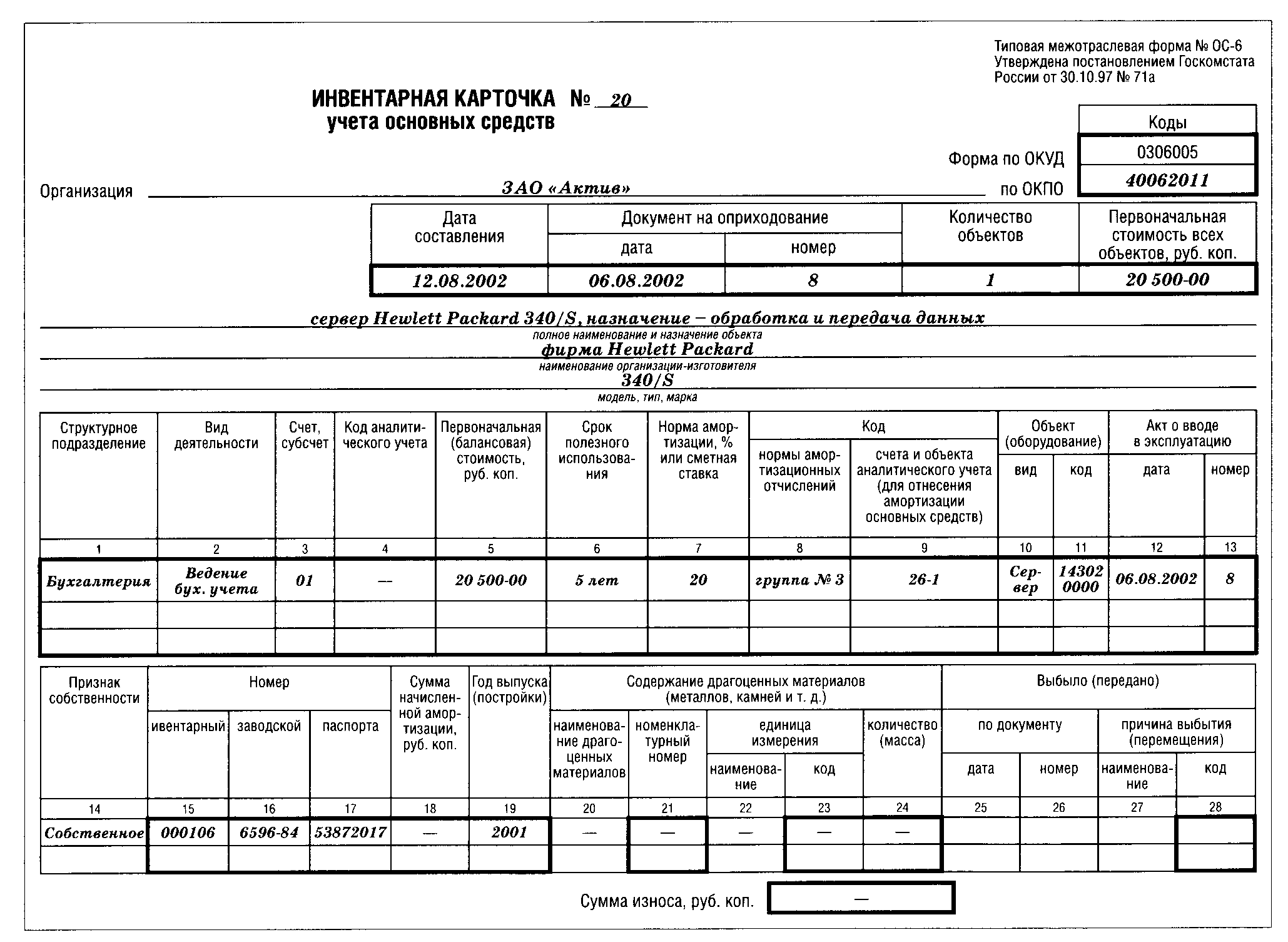 независимо от организационно-правовой формы собственности предприятия, учет основных средств организуется в бухгалтерии в разрезе инвентарных объектов, каждому из которых присваивается инвентарный номер;