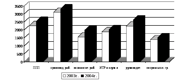 В 2004г. ФОТ тарифыный увеличился по сравнению с 2003г. на153462.87руб. или на 1,01%. В 2004г. премии увеличилась по сравнению с 2003г. на 46038,91руб. или на 1,02%. В 2004г. коэффициент Увеличился по сравнению с 2003г. на 29925,33руб. или 1,02%. В 2004г. ЗП дополнительной увеличилась по сравнению с 2003 г. на 22942,45руб. или на 1,02%. В 2004г. ФЗП общий увеличилась по сравнению с 2003г. на 252367,84руб. или на 1,02%. В 2004г. ЗП среднемесячная увеличилась по сравнению с 2003г. на 1566,26руб. или на 12,6%. По отдельным категориям по предприятию ОРМЕТО-ЮУМЗ: В 2004г. заработной платы ППП на предприятии увеличилось по сравнению с 2003г. на 271,52 руб. или на 12%. В 2004г. заработной платы производственных рабочих увеличилось по сравнению с 2003г на 216,92 руб. или на 7%. В 2004г. заработной платы вспомогательных рабочих увеличилась по сравнению с 2003г. на 429,39 руб. или на 27,7%. В 2004г. заработной платы ИТР и, в том числе служащих увеличилась по сравнению с 2003г. на 139,24 руб. или на 7,4%. В 2004г. заработной платы руководителей увеличилась по сравнению с 2003г. на 390,23 руб. или на 17,5%. В 2004г. заработной платы непромышленной группы увеличилась по сравнению с 2003г на 118,96 руб. или на 8,6%.