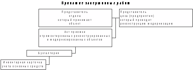 Выполненные работы оформляются актом приемки-сдачи отремонтированных, реконструированных и модернизированных объектов, на основании которого делают соответствующие записи в инвентарных карточках с указанием стоимости ремонта, номера и даты акта.