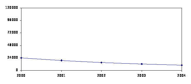 Анализируя показатели, можно увидеть, что объем товарной продукции в 1999г. снизился по сравнению с 1997г. на 59,56%, выручка от реализации снизилась на 60,87%, себестоимость реализации товаров снизилась на 55,20%, коммерческие расходы снизились на 50,05%, прибыль от реализации снизилась на 115,58%.