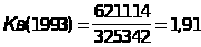 Коэффициент выбытия в 1993 году равнялся 1,91, в 94 резко снизился до 0,01 а затем немного увеличился до 0,08 в 1996 году. Можно сделать вывод - на предприятии практически не происходит обновления основных фондов.