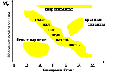 Рисунок 2: диаграмма зависимости спектрального класса от абс. звездной величины (Герцшпрунга – Рессела)