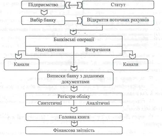 Загальний порядок обліку коштів на поточному рахунку в банку відображено на рис. 1.