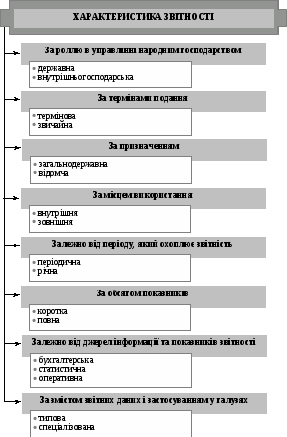 Також, оскільки бухгалтерська звітність налічує значну кількість форм, кожна з яких виконує певні функції, вона для спрощення сприйняття може бути класифікована за такими основними ознаками [10]:
