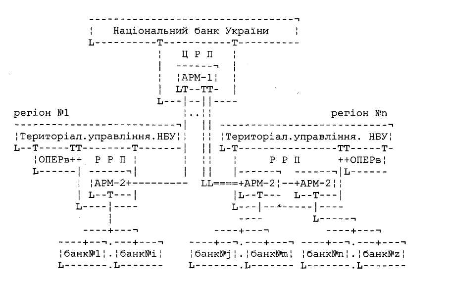 одинарними лініями показано обслуговування банківської установи в АРМ-2 регіональної розрахункової палати.