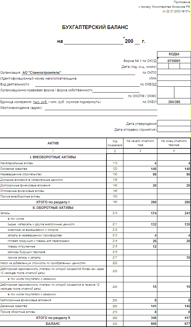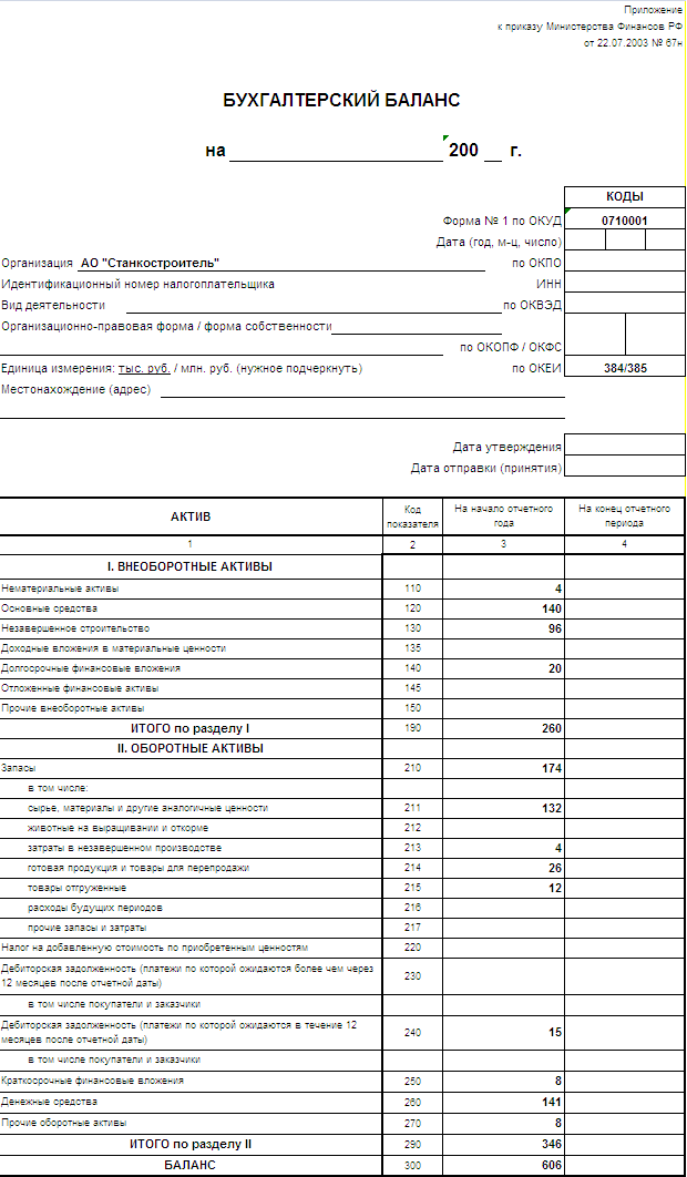 Приказ от 22 июля 2003 г. N 67н о формах бухгалтерской отчетности организаций (в ред. Приказов Минфина РФ от 31.12.2004 135н, от 18.09.2006 №115н).