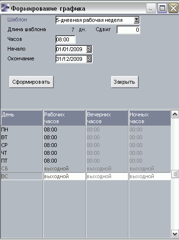 Рис. Формирование графика работы