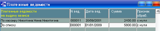 В списке платежных ведомостей появляется новая ведомость, [Приложение 17]. Нажав клавишу Enter и кнопку Ввод, получаем готовую к печати платежную ведомость на выдачу аванса.